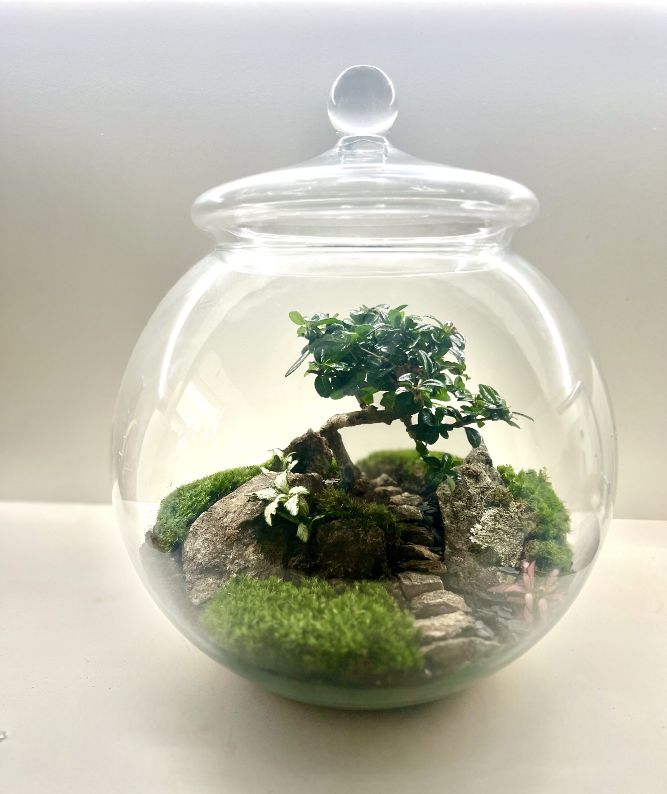 Los paisajes microclimáticos en terrarios, son realizados y diseñados artesanalmente con mucho cariño, para los amantes de la naturaleza y decoración que quieran disfrutar la naturaleza en casa de manera sostenible y sencilla, ya que requieren menos cuidados que una planta o bonsai.