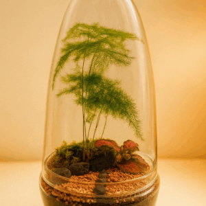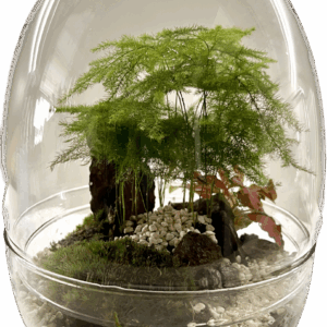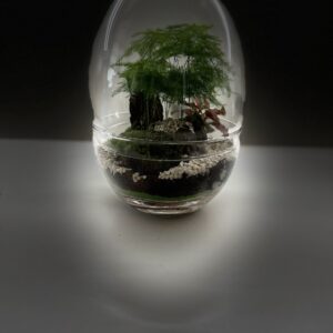 Precioso terrario de prebonsai ginseng deunos 4 años con base de musgo de bola y Fitonia.