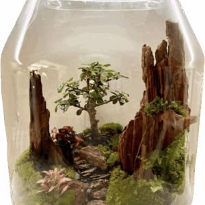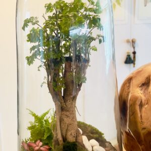 BONSAI de ARBOL ZELKOVA de 9 años, con fitonia, helecho y musgo natural,
